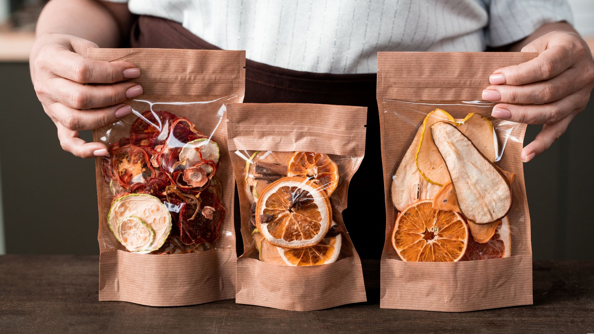 Pouches (stand-up, flat, spouted), such as the dried fruit packaging above