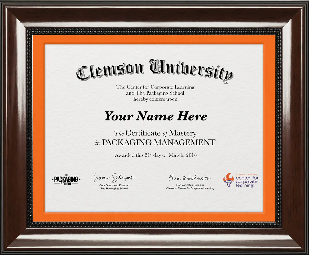 The Certificate of Mastery in Packaging Management, issued by the Clemson University Center for Corporate Learning, is a 12-week online program designed for driven strategic leaders looking to gain an executive education in packaging. This program strives to increase a professional’s confidence in their technical and business acumen—to provide the knowledge one needs to excel as a leader in one of the world’s largest industries.